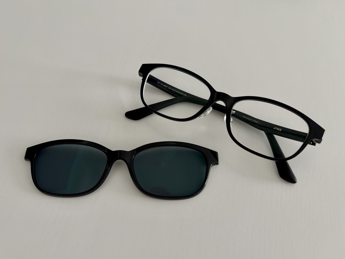 現在使用しているメガネには磁石式のサングラスプレートが付いている。
